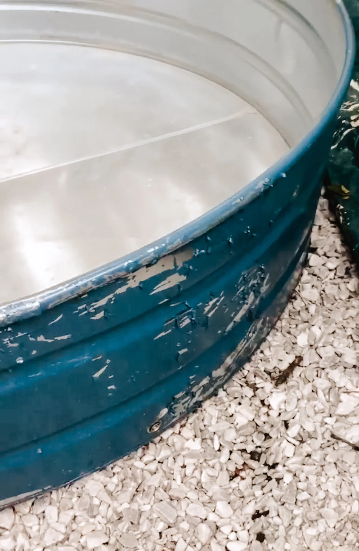 When we first got our stock tank pool last year, I immediately painted the outside. I did a little bit of research and found that I should use paint that works well with metal and that was about it. Well let’s just say it was a major fail. The blue paint I used immediately chipped off of the tank. I ended up having to scrape the whole thing and start again. It was a huge pain. What I learned is that you need to prime the stock tank pool before doing any kind of painting. After I had primed the outside I painted the blue on top and it stuck really well and didn’t chip.